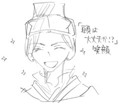 原作2巻で、秀麗のお手伝いをしているときの黎深様が、「頭は大丈夫かと訊きたくなるくらいの笑顔」だったと描写してあるので……。さわやかさん風に(笑)。