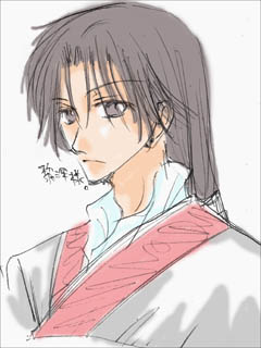 れーしんさまラクガキ。 アニメで後ろで一つに束ねているのを見て、つい描きました(笑)