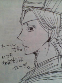 で、イラスト減ったかわりといってはなんですが、ここらでちょいとラクガキをば……。今までのラクガキよりもホント殴り書きなので(チラシのウラにボールペン描き、をケータイ撮影です、、、)それでもいいという方だけ、こちらからどうぞ↓