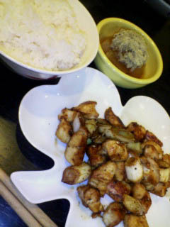 あ、と、唐突ですが、昨日の晩御飯は鶏とネギの生姜山椒焼にしてみました。や、絳攸が「秀麗に作ってもらっておいしかった」って言ってたから……(笑)。鶏とネギを生姜焼風にして、山椒ふってみました。意外といい感じ。とってもカンタンなので、皆さんもおためしあれ〜!