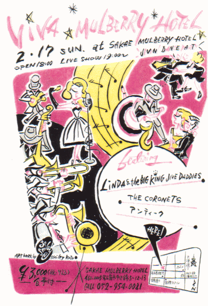 JIVE、というのはダンスの種類 60年代に流行した、シックスカウント、EAST COASTのステップ。 を前面に出したダンスバンド、楽しいダンスパーティー風のライブを行ってます。 ラジオ、テレビなどにも積極的に出演しています。 名前を見たら要チェックだ!
