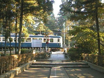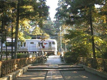 | 冬の赤城山をバックに(2000.2.13〜2000.4.17) 職場の関係で群馬県に住んでいた頃。短い休みを利用してふらりと出かけた上毛電気鉄道の車窓から、長い間大きく見えていた赤城山を見たとき「これだ!」と思って途中下車して撮った写真。しかし沿線は宅地開発が進んでいて、家や電線などのないすっきりとした場所はどこにでもあるというわけではありませんでした。 とはいえ赤城山に広い桑畑というのは、群馬ならではののどかな雰囲気。あとステンレス車というのはこの景色にとけ込んでしまうと見えにくくなってしまうなぁというのが分かりましたね。。。 | |