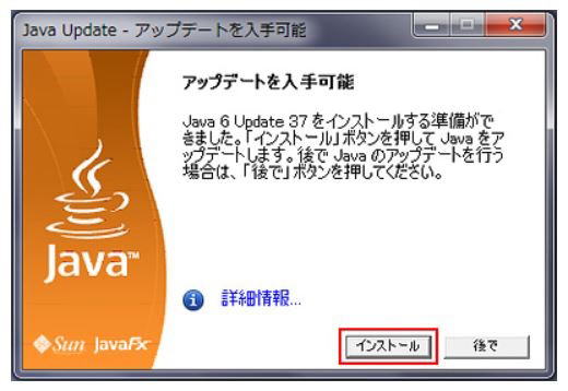 Javaアップデートのメッセージ表示はパソコンの種類により上図の他に下図の場合も あります。[はい]を選択して画面指示に従えばJavaのアップデートがおこなわれます。 表示事例:2 ![]() 表示事例:3 ![]() 表示事例:4 ![]() |