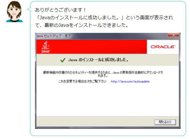 アップデートが成功すると下図が現れます。[閉じる]ボタンのクリックで完了です。 ![]() |