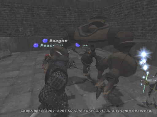 | 今日は新年に入ってから、初の休みの日でした。 当初は、出かけようかと思ってたんですが出かけず、1日家でマッタリ天外魔境Vをやってました。 天外も主人公「ナミダ」の秘密とか分かったり、いよいよ終盤だなぁって感じです。 どういう終わり方になるのか楽しみにしてます。 夜は夕食後にFFをやったわけですが、その夕食の時にかなりお酒を飲んでしまい、正直いってこれから書く事はあってないかもしれません^^; 記憶が断片的にしかないところがあるんでww で、何したかというと赤魔道士のAF3をやりました。 やり始めていきなり大失敗(;´д⊂ もう、AFクエをやったのが、かなり前のことなのですっかりAF3前半の「フェ・イン」は終わってると思ったら終わってませんでした(-_-; LSの人もやったんですけど、俺は終わっているものだとばっかり思ってたのでやらなかったら実はやってなかったとうオチが〜(;_;) ということで二度手間になってしまいました、すいませんm(_ _)m ![]() そして、AF3の前半は終了。 今度は、後半の要塞でロボNM戦です。 もう、この時はかなりの酔いっぷりだったので、いちおうヤバイかもと言った様な記憶はありますw そして要塞に到着して1門の中へはいった所を左にいってすぐのところにNMが湧く場所があります。 戦闘開始。 ![]() 全AFクエの中で最強クラスの敵なんですが、今となっては4人でも余裕で倒せる程度なので、危なげなく勝利! 昔はフルアラやっても何人か死者が出るくらいだったのになぁ〜(遠い目) 前はPTメンバー外でも範囲攻撃くらったので、門の所でレベル上げをしているPTが赤AFクエに巻き込まれて死ぬなんて良くあったw 今となっては良い?思い出です(´-`) 俺ともう1人の人も無事終わり、北サンドリアに戻って、帽子をゲット(σ´д`)σ これで赤魔道士のAF装備を全てコンプしましたヽ(´▽`)ノ そして、ウィンに戻って収納から赤AFを引っ張り出して預けようと、サンドのモグハウスに入ったところでついに力尽き、寝落ちしました(-_- |