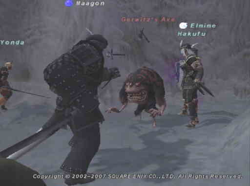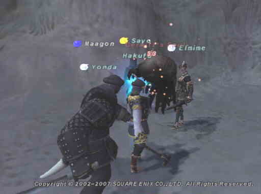 | 今日はDB大会で、人が結構集まったのはいいんですが、予選から決勝戦まで1時間半かかってしまってそこが失敗でした^^; 1時間半の間ずっと立ってるのはつらいっすね(;´д⊂ 次はちょっと考えて1時間以内に終わるようにしたいと思います。 夜のFFはこの前レベル上げしたフレさん達+自分のAFクエをやりました。 まずは「赤魔道士のAF1」をやることになり、ダボイへいきました。 ![]() オークのNMを倒すと、「ダボイ貯蔵庫のカギ」が手に入るのでダボイのどこかにある「Storage Hole」というのがあるのでそこにトレードをすると「オーキシュ・ドライフード」っていうだいじなものが手に入るので依頼主に渡せばクリアです。 次に「シーフのAF2」へ。 シーフのAF2は二つに分かれていて、その片方のソロムグ原野の手伝いをしました。 ![]() シーフのAFだけに、シーフタイプのゴブリンちゃんです(´▽`) 話が前後しちゃうけど、ソロムグ原野にある塔に???があって当たりだとゴブが湧くんですが、その塔の1つが要塞の3門を抜けたところにあるので最悪だとそこまでいかないとなんですが、幸いにもそこではなかったので良かったです(^^) もう1つの方は最後のNM戦以外は手伝いようがないので今日はここまでです。 次に俺の「暗黒騎士AF2」を手伝っていただきましたm(_ _)m まずは競売でダークインゴットを購入し、それからオルデール鍾乳洞へ。 合計3匹のNMとの戦闘です。 ![]() まずは1匹目。ウェポンです。 ![]() 2匹目もウェポンw ![]() 3匹目はお化けです。 この人数なので、余裕で撃退してから、近くの出口から出て暗黒騎士AF2をクリア!足装備をゲットしましたヽ(´-`)ノ 次は「青魔道士のAF2」へ。 火山を抜けてナバゴ処刑場に行くわけですが、レベル50代でいけるところじゃないですね^^; もう手伝いの人がいる前提になっている感じですw 途中にいるワモーラにびくつきながらナバゴ処刑場に到着。 敵はきもいスライムのフラン系の敵です。 ![]() 3人で挑んだんですがこのBCは入室する人数によって敵の数が変わるらしく、3人までだと1匹だけのようです。 レベル50代でやるBCなので敵自体は弱くて、3人でも余裕で倒せました。 青魔道士のAF2も終わり、今日はここまで。 AF3はどれもソロだときついのばかりなのでまた一緒にやりましょう〜w 今日は長い時間お疲れ様でしたm(_ _)m |