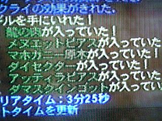 | 今日は昼間は仕事。 夜からFFです(´−`) FFの前に食事に出かけて、飲んで帰ってきたのでレベル上げはやめといて、なにやろうかなぁ?っと考えていて、LSの人に「何かする?」と聞いたら、獣神印章戦へ行く事になりました。 「ホルレーの岩峰」の獣神印章30枚で貰える「クローソーオーブ」で入れる「龍円舞曲」です。 このBFは初めてだけど、聞いた話によると赤と黒の2人でクリアできるくらい簡単という話でした。 LSの人がシャウトで募集してくれて、即集まったので出発。 構成は 忍忍忍白黒吟 です。 敵はあのザルカにいるドラゴンゾンビみたいなやつ2体。戦士タイプと詩人タイプがいます。 敵のWSでHPが一気に200くらいになってしまう呪いがあるらしく、タゲ回しがいいみたいでこういう構成になったわけです。 ![]() ランダムで順番を決めて(ちなみに俺は6番でしたw)緊張の第1戦目開始です! ![]() 中央に2体見えるのが敵です。 ![]() 最初に挑発する人を決めて、戦士タイプからやる、後は適当で、って事になりました。 開幕で黒魔道士の印スリプガU始めて、1人が戦士タイプの龍を挑発し攻撃開始。 初めて少し経ってから「ん?なにこれ、よわww」かなり余裕で1体目を撃破。2体目の龍が起きる前に倒せちゃうくらい余裕ですw 1体倒すと2体目が強くなるらしいですが、そんな事は全然感じないくらい余裕で2匹目も撃破。 正直、拍子抜けするくらい、余裕なBFです^^; PTが強かったのかも知れませんがw(゜▽゜) ドロップ品はというと中当たりくらいが続いて(メヌエットピアス等)大当たりがなく俺の番が回ってきました。ここは凄い大ハズレでオチか神ドロップかどっちかやらないと!なんて思いながら開始ですw 敵を倒す自体は、もう余裕なんで難なく終わり。さて何がでるかな・・・? ![]() ![]() おお!おおおおおおおお!こんなん出ましたけど〜♪(ふるっw) ![]() 画面を携帯で撮ったのでちょっと荒いですが御了承をw FFを始めて、2回目の「ダマスクインゴット」出ましたwそれと地味にベストタイム更新してます(´−`) 前回のサソリのときはまさに大ハズレだったのでよかったです(^^)v 競売でドロップ品の値段をみたら、龍の肉が5万 メヌエットピアスが40万 アッティラピアス4000 マホガニーは削って「材」にしたら15000 そしてダマスクインゴットは・・・。 約300万でしたΣ(゜Д゜) これ売って何を買おうかしら(゜▽゜) あと、ダイセクターっていうのは片手剣で、グラがなかなかカッコ良いですw本当はLSの人が欲しいって言ってたんだけど、もう前5戦で取ったもんだとばっかり思っててロットしちゃいました(;´ρ`) とにかく、こんなに楽で結構良い物が出るので是非、また行ってみたいと思いますw |
