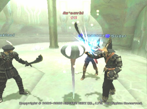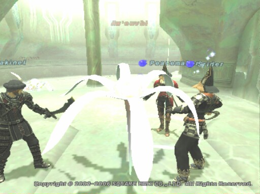 | 今日は仕事があったので仕事へ行ってきました。 仕事が終わって家に帰り、もう習慣のジャグナーチェ〜ク!ハズレでした・・・w 夕食後、今日はLSの人のラーニングの手伝いにアル・タユ方面へ行ってきました。 目的のラーニング技を使う敵を求めて塔の中へ(゜д゜)ノ ![]() まずこれが目的の技「A.バースト」使うゴラホです。 「A.バースト」は短時間、命中率を下げる効果の範囲攻撃です。 まぁ、ようするに範囲フラッシュですw 「A.バースト」難なくゲット!おめでとう〜w次の敵を求めて移動です。 ![]() この敵が使う「バーチカルクリーヴ」という技です。 「斬」と「重力」の属性をもった攻撃技らしいです。青魔導士の事分からないので「らしい」が 付いてます(゜▽゜;)その辺は良しなにw しかし上の花びらが閉じた状態ではこの技は使わないらしくて ![]() 上の状態(花が開いたような)にならないと使わないので少々やっかいではありますね。 ですが無事に「バーチカルグリーヴ」もゲット! さてさて次へ向かいます。 ![]() この壷みたいな敵が使う「反応炉冷却」です。 この技は防御力アップ+アイススパイク効果があるらしいです。 ちょっと時間も遅くなってきて眠かったので、記憶が曖昧ですが 多分、この技はラーニング出来なかったと思います;; 出来なかったといえば後は ![]() フラボ?が使う「プラズマチャージ」(効果:ショックスパイク)も出来なかったと思います。 途中に俺がミスって事故を起こしてしまいました。 ![]() ごめんなさいm(_ _)m テレポしてもらって眠さMAXだったのでテレポイントで落ちました。 次の日の朝に書いてるので記憶が曖昧な所もあり多少違ってるかもしれませんが ご了承くださいませ(;´д⊂ |