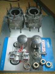 ■ピストンにリング嵌めてコンロッドにピストン組み込んで。 ああ、そうだ。 いかん、シリンダーにYPVS組み込んどかなきゃ。 とYPVSを組み込んで、再利用しよと思ってた(オイ)オイルシールとOリングを探す。 み、みっからん。行方不明。