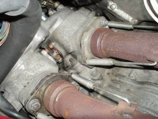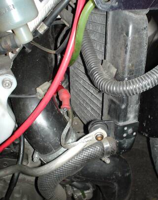 タンクと外装外したままなのでガソリンホースからキャブにガス足してアイドルチェック。 いまいち左の排気が甘い。クランクにガス溜まってるにしてはちょっと白い。 前回、左右アースを別系統(右サーモスタットカバー、左ラジェーターアーム)に落としてあったので、隙間探して左もカバーに落とす。