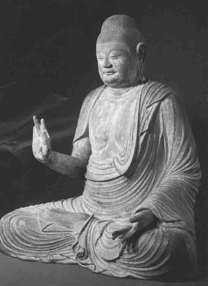 仏像 かたちとこころ Forms and Idea釈迦 SHAKA zaakyaの姿を人間の形で現し、その象を信仰の対象として礼拝するようになったのは、紀元1世紀のころで、 それまでは、仏舎利をスツーパに納め、そのスツーパの壁面に釈迦の一生の物語をレリーフ状に荘厳してはあったが、釈迦牟尼の姿をそのまま表現することははばかり法輪・足跡・宝座・菩提樹などを釈迦の象徴として描いただけであった。それが紀元一世紀ごろ、インドの西北部のガンダーラ地方で釈迦の姿をそのままに表現して彫刻するようになったのである。 これはアレキサンダーの遠征によって、この地方にギリシャの彫刻文化が移人されており、それが仏教と結合した結果であるとみられている。 こうした仏像をつくり、仏像をおがむ仏教が中国に伝わり、敦煌や雲崗の石仏を残し、やがて朝鮮半島を経て日本に伝えられた。 欽明天皇13年、百済の聖明王がもたらした釈迦像の背後にはこのように長い長い仏像成立の歴史が秘められていた。 その後、止利仏師ら帰化人技術者らによって数多く造られた。飛鳥大仏と呼ばれる安居院の本尊は後世の補修はあるが止利仏師が造立した丈六釈迦像で、法隆寺金堂の釈迦三尊は完全なその作例である。 さて、これらの仏像は、その後も時代の流れとともに様式は変わってゆくが、仏像であるがために、変わることのない形の特徴をわれわれは発見する。仏像を仏像たらしめているものそれは仏像が信仰の対象であるがために守られている約束のかたちなのである。 そのかたちをわれわれは「仏の相」と呼ぶ。 仏の相にはいろいろあり、もっとも代表的なものだけでも額の中間に白毫(びゃくこう)がつき、頭部は巻き髪の螺髪(らはつ)で、首筋には三道(3本線)あるもので、また、手に水かきがある縵網相(まんもうそう)があるとか、足の裏には千幅の模様があるとか、耳たぶが非常に長いとか、それらは常人と釈迦との違いを強調するための約束ごとなのである。 これらを仏像の三十二相といっている。 如来 NYORAI Tathagata如来とは絶対心理・真如から降下して来て人間となったもの、という意味である。真如を体現したものは仏教では釈迦であるが、真如から来るものは釈迦のみとはかぎらないということで、大乗仏教では、いろいろな如来を考えるようになった。薬師如来、阿弥陀如来Amitabha Tathagata 、阿シュク如来、弥勒如来などの仏陀である。これらの如来像のみを厳密には仏陀でありその中心になるのが釈迦如来である。 菩薩 BOSATSU Bodhisattva釈迦以外の如来の存在を認めると、これらの如来に到達する過程にある菩薩の存在も認めなくてはならなくなる。釈迦の場合も菩提樹のもとで悟りをひらき成道されるまでが菩薩であるから、釈迦以外の如来にもそれがあてはまるということであり、如来・仏陀になろうとして修行を積んでいる者すべて菩薩の姿ということになる。そのためか、菩薩は多彩である。 観音菩薩、弥勒菩薩、文殊・普賢菩薩、日光・月光菩薩、地蔵菩薩、等々また、観音菩薩も多くの姿がある。 救世観音、聖観音、楊柳観音、来迎観音、千手千顔観音。十一面観音、不空羂策観音、如意輪観音、准胝観音、馬頭観音、等々 いろいろなお姿になるのを観音の三十三化身とよんでいる。 百済観音、夢違観音などは愛称となっている。 次ページへ続く |