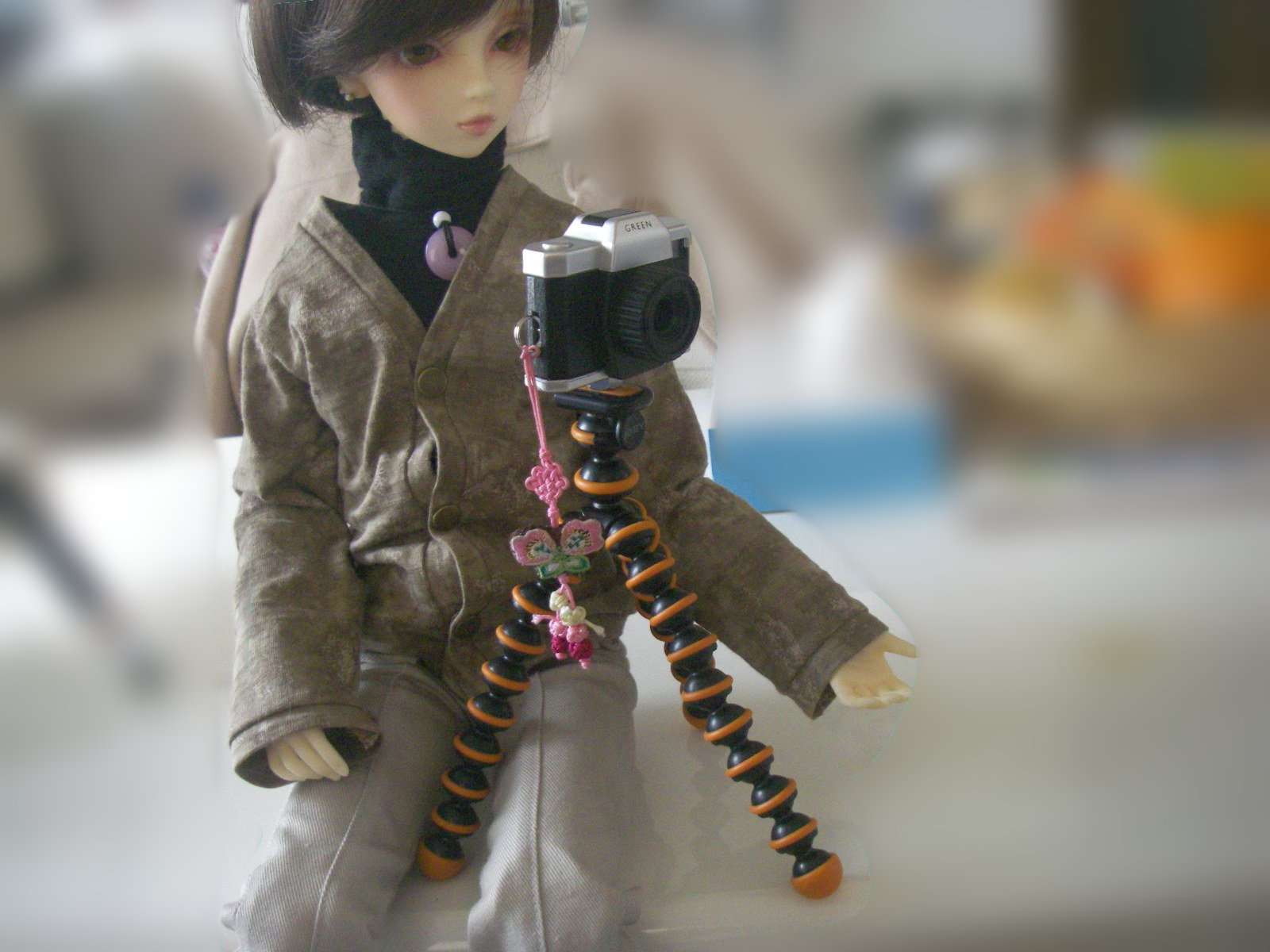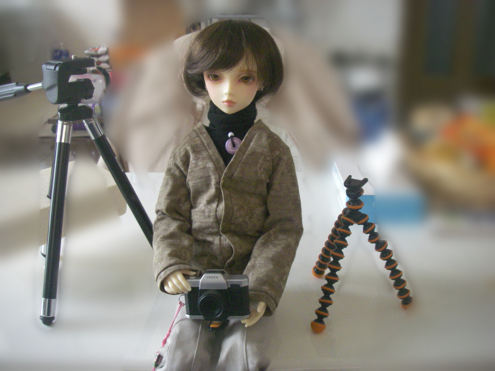 ちょうちょのストラップつけて、専用三脚に取り付けて、