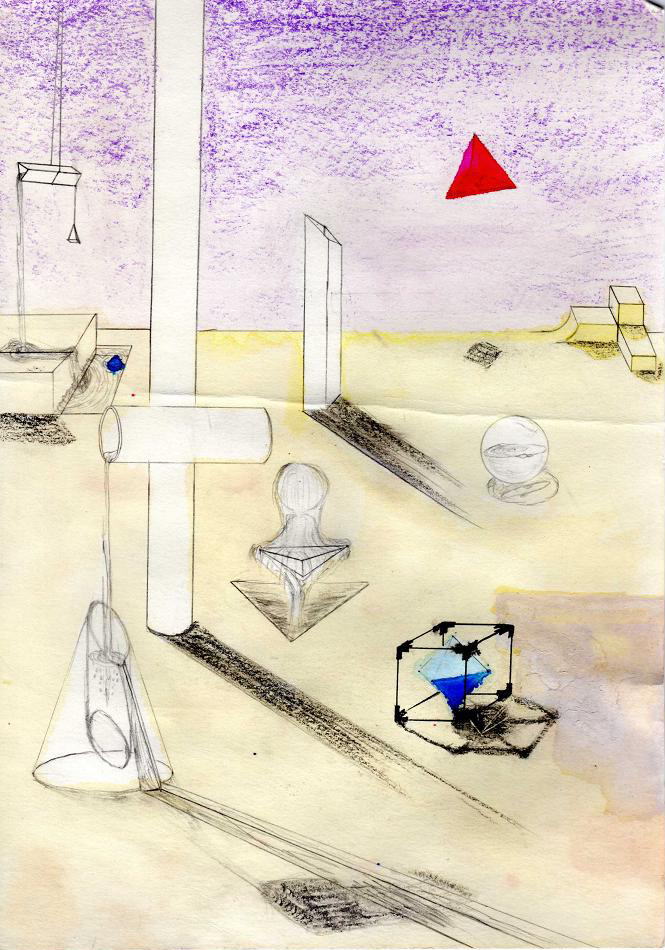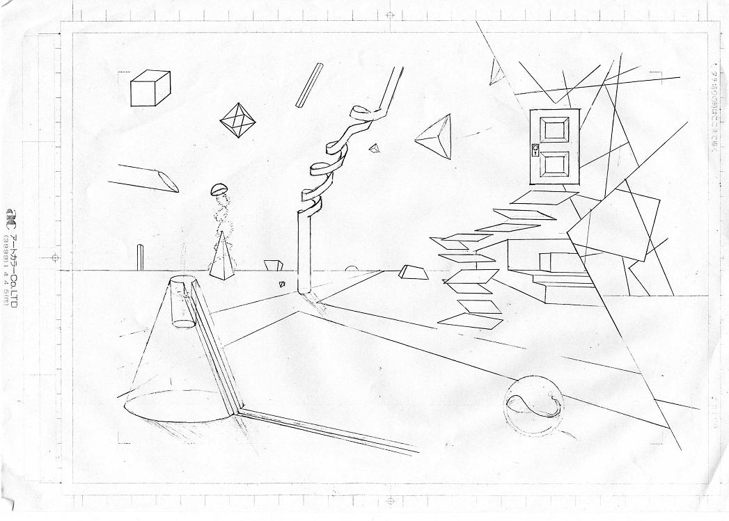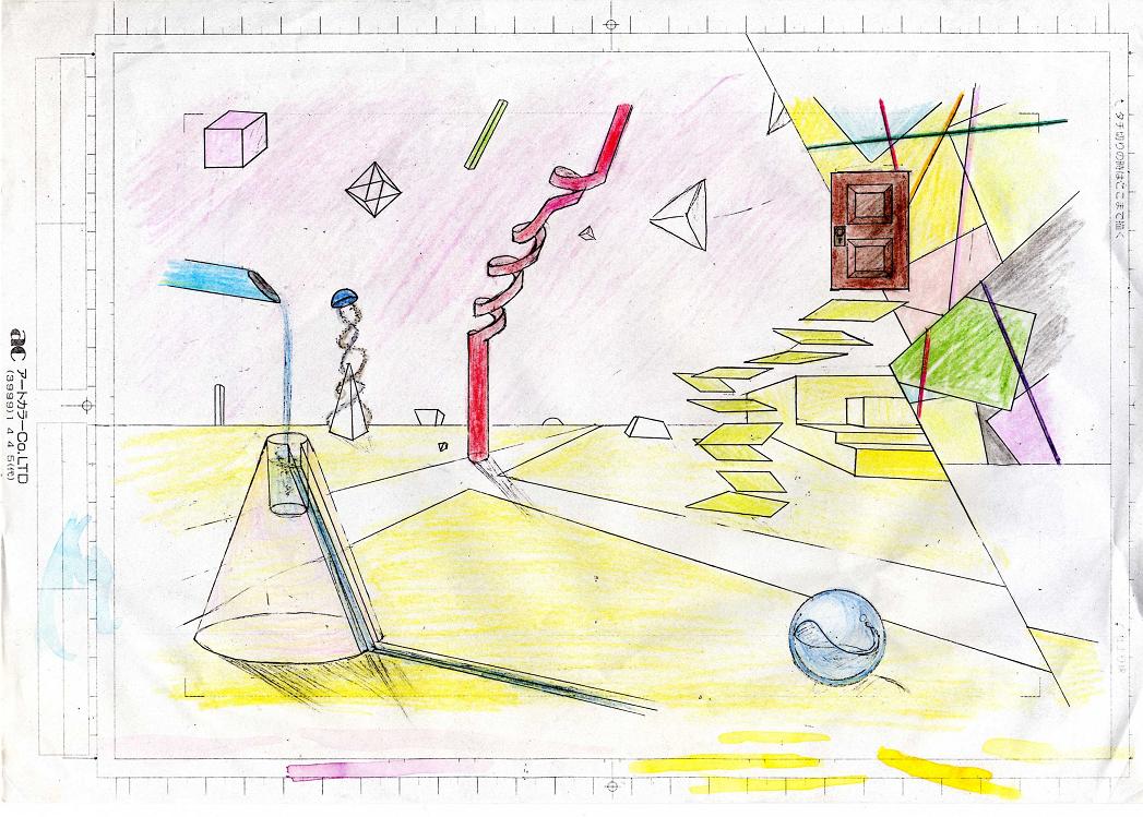 大昔に描きかけで放置した絵。 紙は湿気でごわごわ。インクにじんでるし。 でもなんだかこの状態が気に入っているので、 もうこれ以上いじる気にならない。 こういう、不思議な空間を散歩してみたいな。 以下は、ひねくり回してた時のもの。
