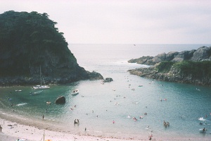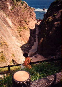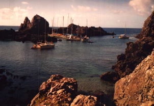 【プロフィール】 伊豆七島の中で最も愁眉な入江で関東のヨットマン憧れの地である。 周囲は濃い緑に囲まれ、水あくまで透みわたり、中心には珊瑚も自生するという。 ここは港でなく人工建造物は皆無で、周囲を山に囲まれ緑深く、海側は岩礁に囲まれ 人里から離れ、道はなく、秘境の趣が強い珠玉のアンカーサイトである。 【入港ガイド】 @新島から式根島の最西端の岬を目指しアプローチをとる。 A入江に近づくいても岩礁がブラインドに成って泊地は見えない。 B近づくと入江は北西に開いて「泊港」と「吹之江」の2つの泊地がある。 C泊港も素晴らしいが夏期は船よけブイで進入禁止に成り入港はできない。 D西岸沿いを注意深く進み入口を探す。先着ヨットがいればヨットのマストが見える。 Eやがて吹之江の入口が確認出来るはずだ。 F吹之江の入口中央には暗洗岩があり満潮時は暗岩となるので注意を要する。 G水道の中央よりやや西側をバウワッチし暗洗岩を確認しながら進入する。 H係留は主に入江の西側に3〜4艇、簡単なビットがある。 I東側にも2艇ほど錨泊が出来そうだがビットは無いのでテンダーなどで岩にもやう。 J入江南奥に泊めた艇があったが干潮時は浅くて怖いな〜。 K底質は全域岩石と砂利でアンカーの効きは極めて悪く潜って岩に食い込ませた。 L上陸するときは操船出来るものが艇に残って走錨に対処することが必要。 M西〜北風の時は入出が困難となるので風向きが変わる前に速やかに脱出する。 Nそのため出船係船にしておくことが肝要と言う。 【島ガイド】 @町には入江最奥までテンダーや泳いで行き南側の崖を登ってゆくことになる。 A道はヨットマンが付けた獣道で、潅木、草木をかき分けて登ることになる。 B途中から後ろを見ると入り江の全景が絵葉書のごとく目に入る。 C吹之江では食料、水とも補給は出来ない。事前に野伏港で補給する。 D但し、水は新島から送られてくるので、大量補給は遠慮すべきであろう。 E秘境の温泉、足付温泉、地鉈温泉は必見である。 【エピソード】 何も言うことがない珠玉のアンカーサイトである。 地鉈温泉がすばらしい秘湯である。 地鉈温泉へのアプローチ 地鉈温泉 |