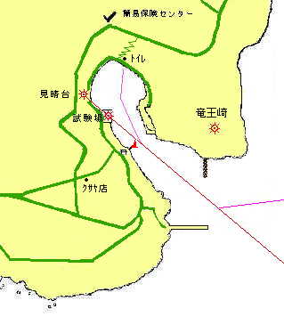 | 初入港日:1975.08.13 スプレンダー19 最新情報:2002.07.20 スカンピ 見晴台から見た竜王崎と波浮港口 港口から見た波浮港内 |