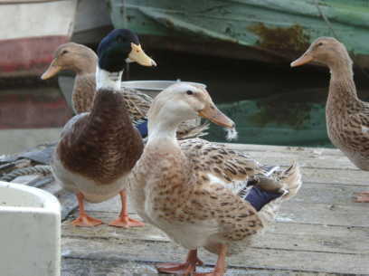 ”我が愛する造船所” 船橋のミクロネシア!!のその後の話しをしませう。 ・・・前話まで・・・ 船橋港の西外れに、くだんの造船所はある。 余りにも良心的なオーナーに要らぬお節介をし、ご迷惑を掛けぬ様、匿名 での紹 介をお許し願いたい。 全国的に、木造りの和船を作る造船所は少なくなった。 この造船所も同様で、「とらさん」で有名な葛飾柴又の近くにある水元公園のへら鮒池での釣宿に欠かせぬ 和船を作っている船大工さんがこの造船所のオーナーでありこの話の主である。 主は、豊かな奉仕心と、きさくな人柄で、海好きの若者(主 より若い人は60歳でも若者!)を応援してい、 ・・・中略・・・ 木陰談義で、目の前の水面に 「アヒルがいると絵になる〜!」 と提案した者 がい全員が一致して 「いいな〜!、それは善い考えだ〜!」 と言う事になった。 早速、先出の会長格のH氏があひるを12 羽購入し、小屋をつくり、念願のあひるの泳ぐ風景を手に入れた。 ここで、始め て「餌は誰がやるの? クラブ員は土日しか来ない 平日は毎日くる俺がやるは めになった」と ぼやくオーナーには、可愛く育ったアヒルたちと、集まってく るメンバーをこよなく愛する目があった。 ・・・PartT話まで・・・ その後、その造船所は、あの大きなプラタナスの木陰のクラブガーデンも何回か落葉し、葉も入れ替わっ たが、主も、メンバーも元気で、昔と変わらぬ佇まいを保っている。 変わったと言えば、もう一人の主役のアヒルたちだが、その後、2代目、3代目が誕生し代替わりが行なわ れていたが、真っ白だった羽根が何時の間にか茶色の羽に変わっているのだ。 そう!主の評判を聞きつけて鴨が一羽紛れ込んできたそうな。 その鴨とアヒルたちが恋に堕ち生まれた 子供が合鴨と成って繁殖したと言う訳である。 合鴨は、あひると違って自らが卵を抱き雛を孵す能力が高いという。 そして数年したらその殆どが合鴨に 成ったと言う訳だ。 さて、合鴨といえば、鴨南蛮や、燻製にすると上品な味でとても美味しく、あひると違い食べられてしまう 確立は極めて高くなるのだが、嬉しいことに、此処の合鴨は食べられた形跡は無い。 今も、そよ風がプラタナスの大木を涼しげに通りすぎ、何時ものメンバーが集まり、お茶を飲み、漁に出 かけ、釣った魚の自慢話に華を咲かせている。 勿論、その傍には、あのアヒルの子孫たちが元気で泳ぎ回っている。 船橋の南太平洋は確実に生き残っていました。 おわり |