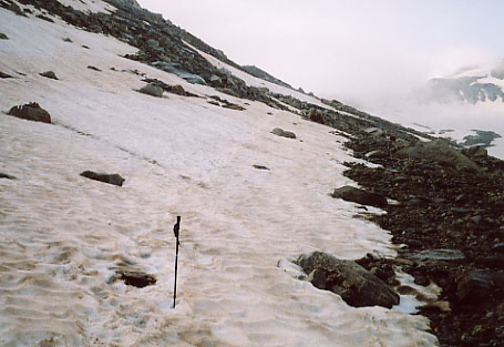 うとも思ったが、雪渓の上に踏み出してみると思った