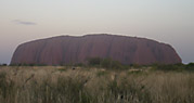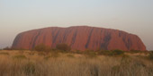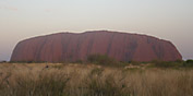 | 夕陽に照らされるウルル(エアーズロック)は、時間とともにその色を変えてゆきます。これがひとつの観光ポイントになっていて、私もこれにゆきました。とりあえず何分かおきに写真を撮ったのでご覧あれ。 ちなみにここで飲んだシャンパンが結構おいしくて、何度かおかわりしてしまった。カナッペもおいしくて、ここだけでおなかがいっぱいになってしまい、昼食の惣菜も残っていたので、夕食、外に食べに出るのはあきらめた。 ここで、大阪から来たFさんと、奈良から来たMさんと知り合いになる。二人ともとても感じのよい人々で、旅がいっそう楽しくなります。偶然、日本でネット手配していた別の会社主催の星空ツアーも夜に一緒になりました。この広いネット上の世界で、偶然同じツアーを手配していたっていうのもなんだか嬉しくなるね(*^_^*)・・・ていうか、見つけられる限りの一番安いツアーだったから・・か(笑)? 翌日ケアンズにゆく飛行機まで一緒だということが判明し、ケアンズでの夕食を一緒する約束をする。ひとりでレストランって、雰囲気的にも、あのスペシャルな量的にも迷ってたので、とっても嬉しい約束でした。 |