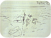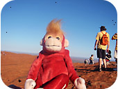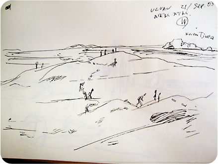 やったー!いよいよ頂上到達です! とりあえずウッキーモンキーと記念撮影(笑)。でもなんとなく日本人にサルとの写真を頼むのは気恥ずかしいので、欧米人ぽい人に撮影を頼んでみる。なんだろうね、このあたりのビミョウな心理は(笑)。 ウッキーモンキーの話題になり、「めっちゃ疲れたってこの子も言ってるんですよ〜」みたいなことを言ったら、「いや、疲れてるわけないよ。だってサルだぜ!?」みたいなことを言われ、それもそうか〜と妙に納得(笑)。なんだよウッキー!ずっと私のリュックにいたくせに〜! とりあえずゆっくりしてみて、四方を軽くスケッチ。スケッチというか、なんか、多分私にしかわからんような絵。でも、今回の旅はひとりで動くぶん、こういうことに思う存分時間が裂けて、それがたいへんよいです。