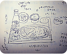 | 機内食(昼食)では、日本の味が恋しくて、味噌味チキン&ライスを注文。う〜ま〜い〜。味噌ブラボー!あと、じゃがいものサラダがすごくおいしかった。赤ワインを注文。 |
