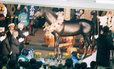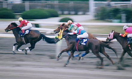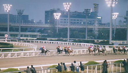 | 12月31、20世紀最終日の競馬を見に大井へ。別段、何の感慨もなく、いつもどおりにパドックと馬券売り場、そしてスタンドを行ったり来たり。たまに予想屋「ゲートイン」の講釈に耳を傾けたりしつつ、まったくいつも大井に来たのと変わらない行動。この日の前半のレースは早田、的場文、両騎手のお陰で収支もプラス。「お、こいつぁ、いい年が迎えられそうだぜぇ〜」なんて思いつつ、レースはメインレースを迎えた。 |