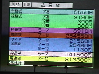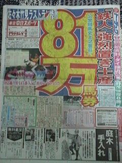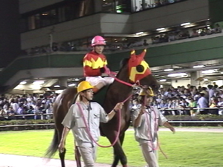 | 実は最終レースのあとパドックで、当日参加していた騎手が皆集まって、竹見さんを胴上げしたんです。しかし、無念のバッテリー切れ。何で、何で、何で!こんな時に・・。でも生でしっかり、この眼に焼き付けてきたから、ま、いっか。それにしても長い一日だったなぁ。正直、宇都宮⇒川崎のダブルヘッダーはつらかった。でも、肉体的にはつらかったが、精神的には全く疲労なし。むしろ大満足。歴史的名馬と歴史的名手の引退をしっかり見届けることができたのだから。 |