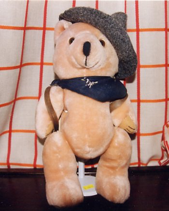 | 名前:アントン (♂?) コメント: 旅先のおみやげもの屋さんでスカウトしてきました。 正面からだとわかりにくいのですが、背中にリュックを背負ってます。 小粋な山男のアントンくんです。 そして長い間店に陳列されていたのか、かすかにカビくさいアントンなのでした。 |